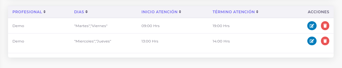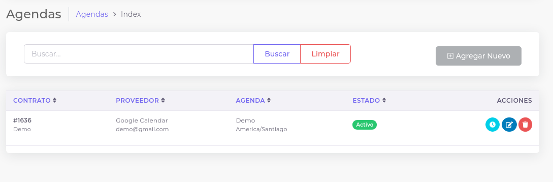 2. En esta sección podrá agregar nuevas agendas a sincronizar, editar agendas y horarios, además de eliminar las agendas que ya no necesite.
