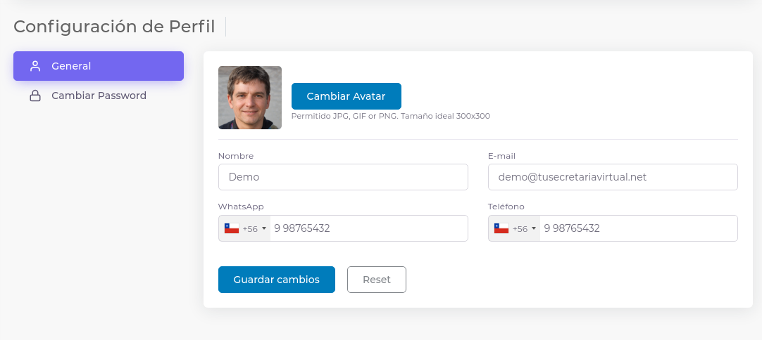 - Email: Este dato es esencial para las comunicaciones entre usted, nuestras secretarias, equipo de ventas y soporte técnico. Además, será el canal oficial utilizado para informarle sobre las llamadas entrantes o salientes, así como los correos electrónicos y chats. Por lo tanto, es crucial mantenerlo siempre actualizado.